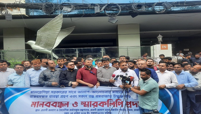 মালয়েশিয়াসহ বিভিন্ন দেশের বন্ধ শ্রমবাজার খুলে দেওয়ার দাবীতে প্রবাসী কল্যাণ ভবনের সামনে এক মানববন্ধন কর্মসুচি পালনের পর জনশক্তি রপ্তানী ও বৈদেশিক কর্মসংস্থান উপদেষ্টার কাছে স্মারকলিপি জমা দেয়া হয়।